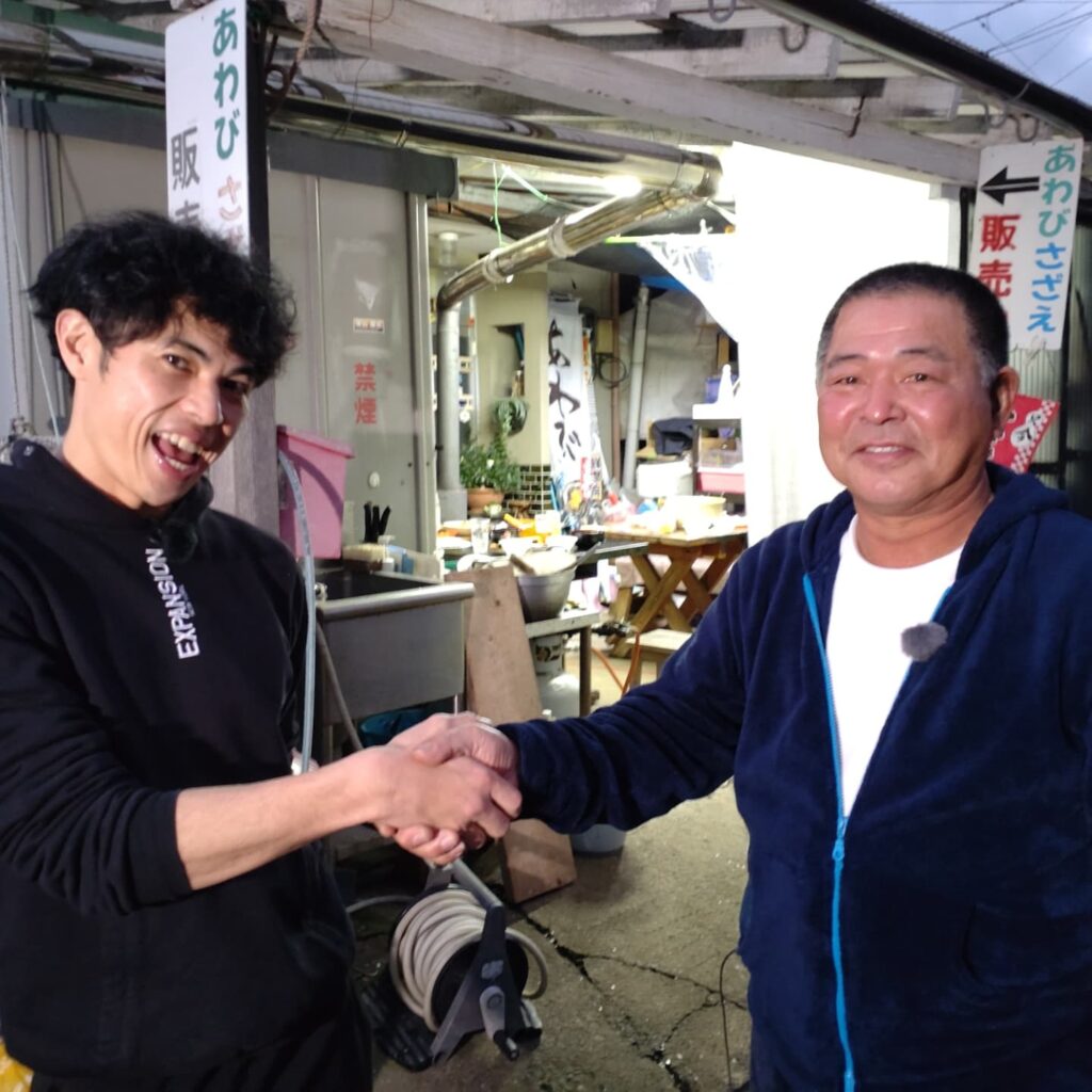バラエティー番組のTV撮影で小島よしおさんがナマコの出荷のお手伝いに来てくれました。